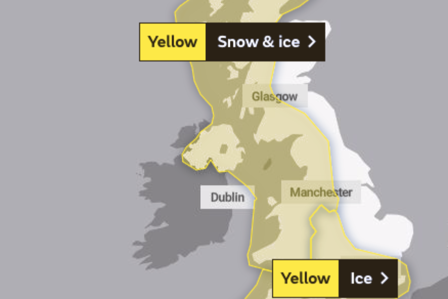Yellow warning for snow and ice across North Wales tonight