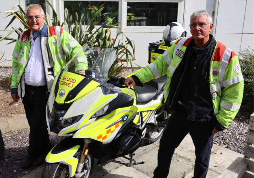 As well as snaking through North Wales and beyond collecting and delivering blood products, bikers like Phil Hackney and David Dean drop-off and pick up medicines and even donated breast milk.