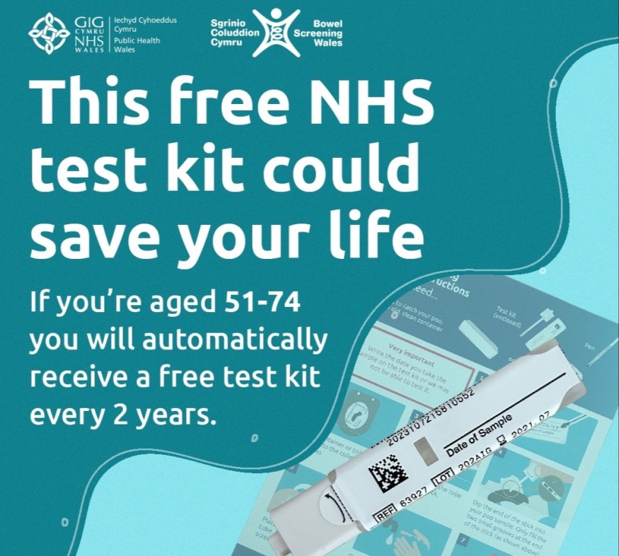 From Wednesday 9 October, 50-year-olds registered with a GP in Wales will be offered self-screening for bowel cancer for the first time and will receive a screening kit in the post.