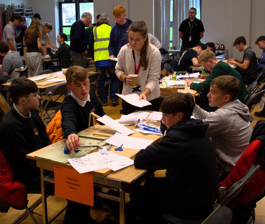 Adding to the buzz on the day, the college also staged the Rotary Technology Competition, which saw 16 North Wales high schools go head-to-head in a creative engineering challenge. Each team of four students was tasked with designing and building a coin sorter using only wood, cardboard, and glue guns. Their ingenious creations were judged by a panel of Rotarians and Airbus apprentices, who also mentored the pupils throughout the day.