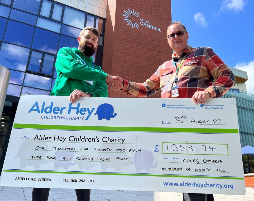 Adam Dixon, Running and Challenge Manager, Alder Hey Children's Charity, added: “On behalf of everyone at Alder Hey we'd like to say a huge thank you to the staff and students from Coleg Cambria for their fundraising efforts.