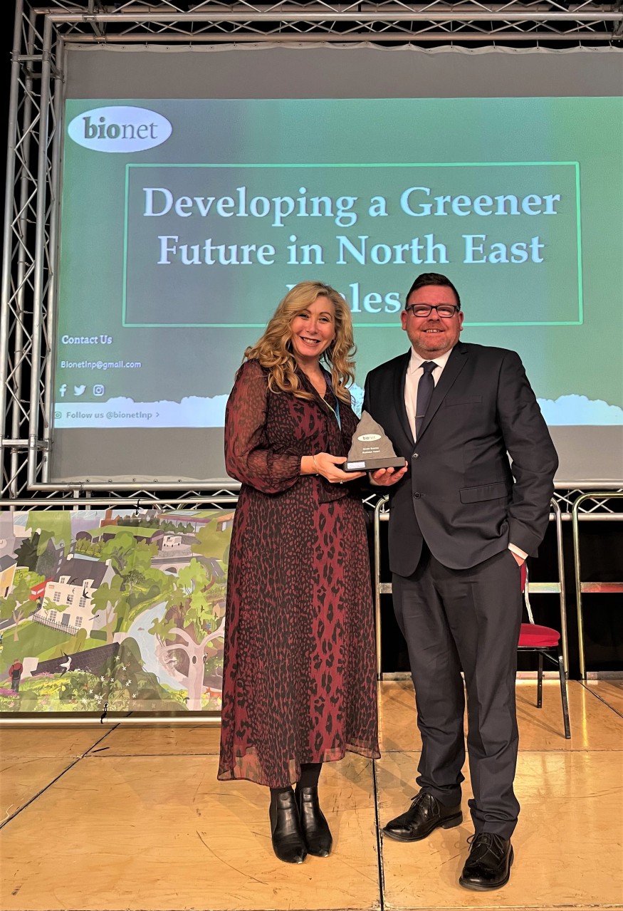 The new wildlife corridor and wellbeing garden at Coleg Cambria Deeside received a prize in the Business category at the inaugural Bionet Awards, held at Venue Cymru, Llandudno.