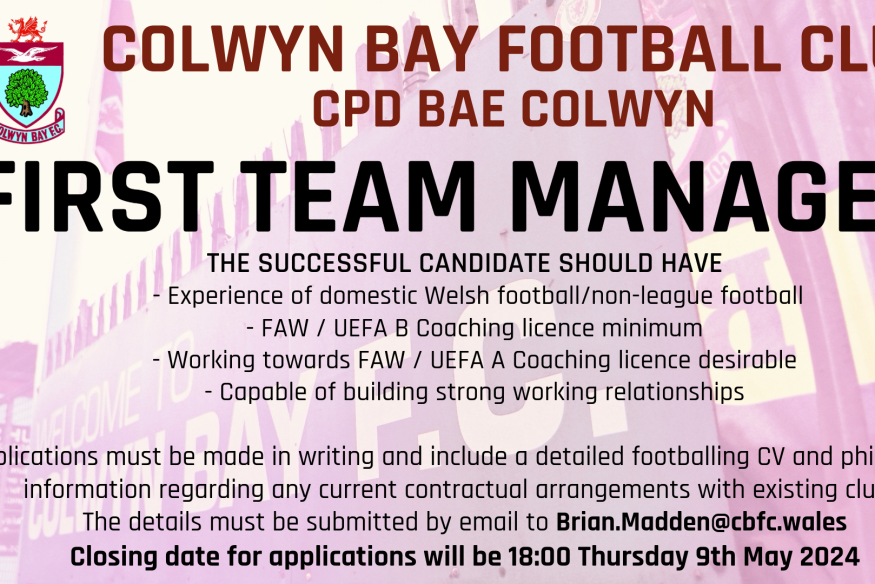 Colwyn Bay FC advertises for a First Team Manager