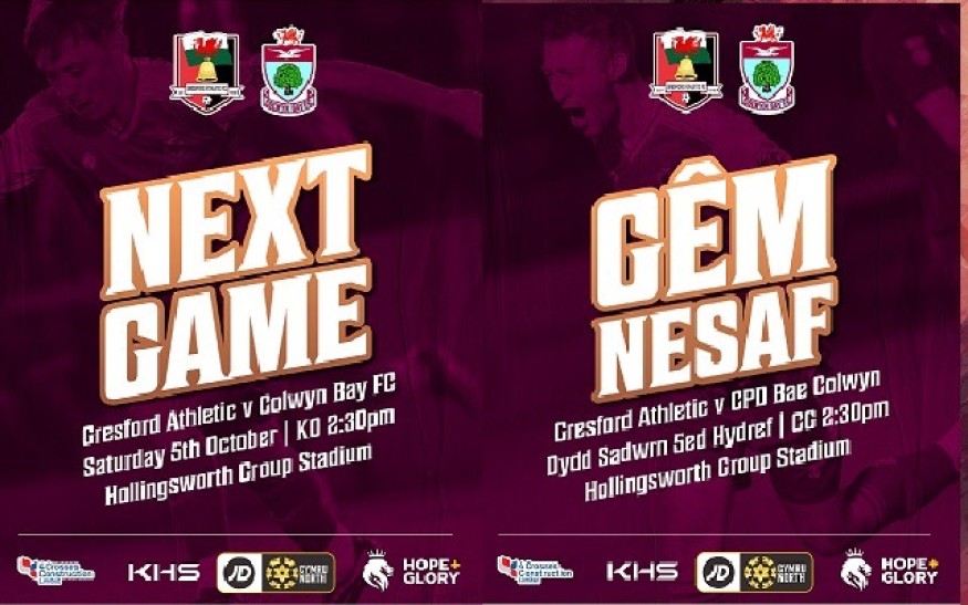 Gresford have lost six of their nine league games so far, but were 9-0 winners against Prestatyn Town in their recent JD Welsh Cup tie, with Charlie Edge scoring a hat-trick, and were unlucky to lose a tight game 1-0 away to Bangor 1876 last weekend, so cannot be taken lightly.