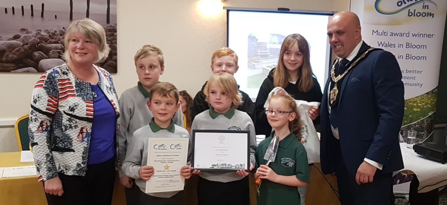 He talks to hard-working pupils from Ysgol Llandrillo-yn-Rhos who collected a Gold in the Schools category along with first and second prize winners in the local Churches category.