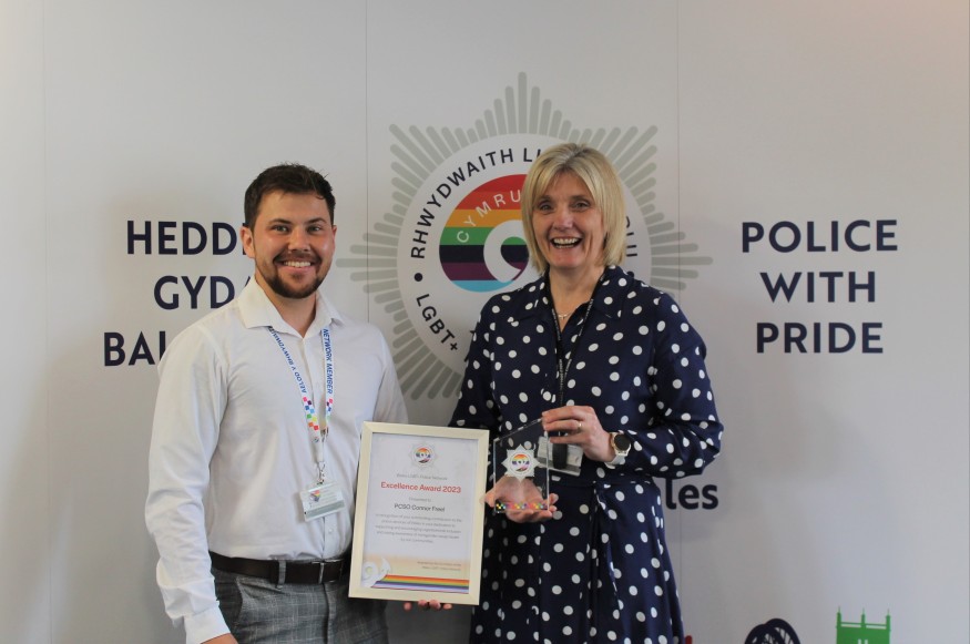 The event also included the presentation of the Wales LGBT+ Police Network Excellence Award which went to PCSO Connor Freel from North Wales Police who works in the Flintshire South area. As well as his PCSO role, Connor volunteers as an LGBT+ Staff Support Liaison and has been instrumental in supporting the LGBT+ community both inside and outside the of Police.