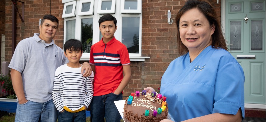 Deanna, originally from the Philippines, trained at Bangor University to register as a UK nurse and is now settled in Wrexham with her care assistant husband, Renz, and their two children.