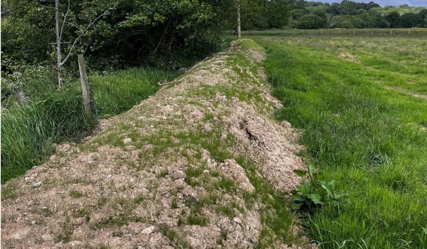 Following a report, a site visit took place and the landowners explained they placed leftover material in a 1.5 metre high bund for around 150m along the river.
