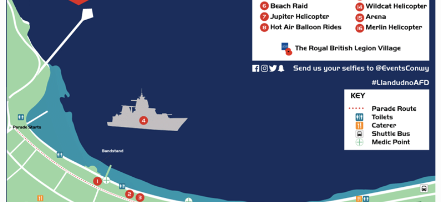 The event includes beach landings and the much loved Red Arrows display team who will be taking to the sky above the town around midday. The event is expected to start at 11am from the Llandudno War Museum. In all over 1000 serving personnel, veterans, cadets and marching bands are expected to take part in the celebration.