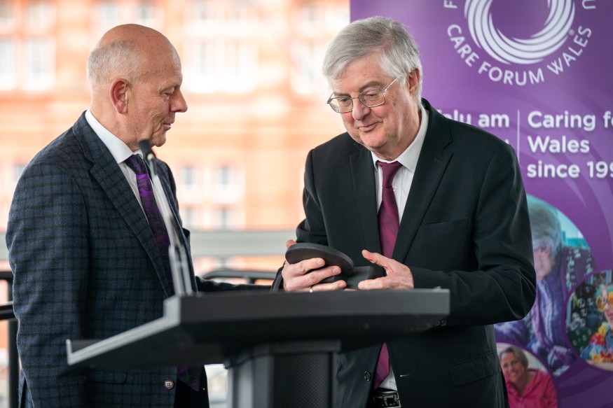 Mark Drakeford was presented with a 2024 Wales Care Award, at a celebration at the Senedd in Cardiff to mark the 30th anniversary of Care Forum Wales, which represents more than 450 care homes, nursing homes and other social care providers.