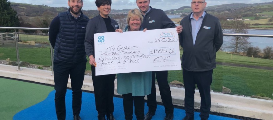 Receiving the cheque, Tŷ Gobaith Fundraiser Beverley Bradley said: “We are delighted with the support from the Co-op – the money raised will make a huge difference.