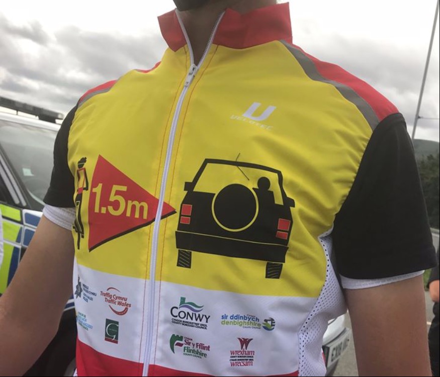 The back of the gilets also display the 1.5 metre logo – the distance required for when passing a cyclist safely at 30mph.
