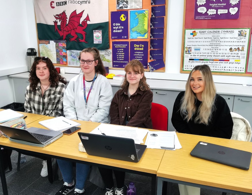 Coleg Cambria learners Mirain Gwyn, Lisa Fanson, Elin Roberts and Abbie Griffiths are all set to study Primary Education through the medium of Welsh at Bangor University from September.