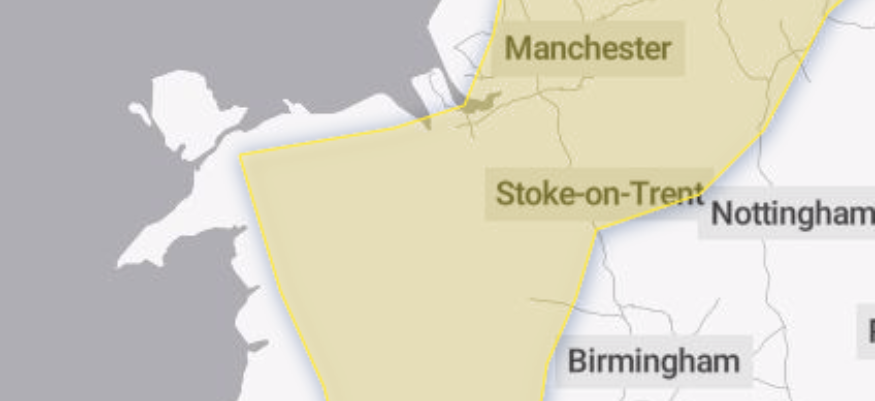 It is expected that areas in the North West of England and further south in Wales are significantly more likely to be effected by bad weather across the day.