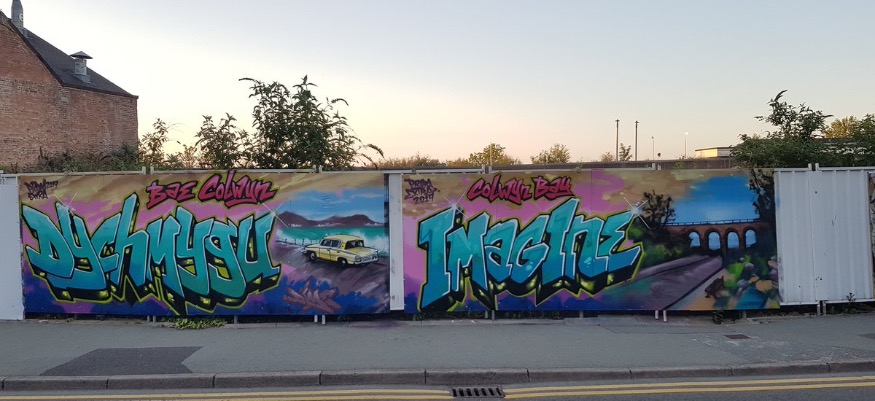 A town centre development site in Colwyn Bay has been brightened up with the help of local artist Andy ‘Dimeone’ Birch.