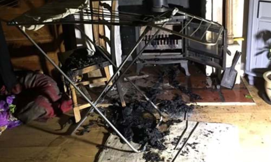 “The fire is thought to have originated in clothing drying in front of a log burner- always keep clothing and fabric well away from open fires, log burners and electric fires.