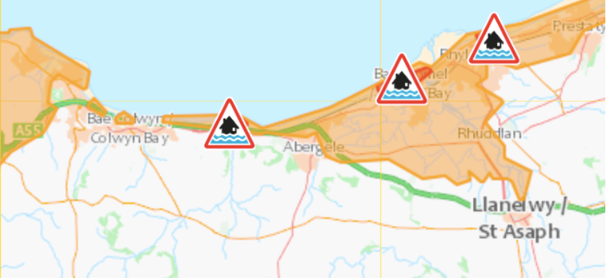 Flood warnings have been issued to four Conwy and Denbighshire locations by National Resources Wales.