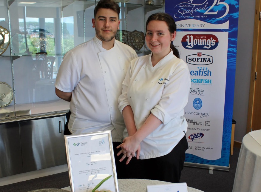 Pippa Taylor, 19 from Bodelwyddan and Jay Rees, 20 from Chester beat off fierce competition from teams from across the UK in the Western heat to qualify for the UK final of the ‘National Seafood Chef of the Year 2022’ competition in the summer.