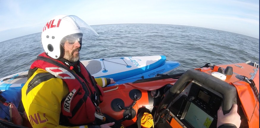 On arrival, the lifeboat crew assessed the situation and found that the paddle board had lost its keel blade, making it nearly impossible to manoeuvre. The canoeist was fine but had stayed alongside the paddle boarder to ensure their safety. The lifeboat’s helm decided the safest and most efficient rescue method was to bring both individuals aboard the lifeboat while towing their paddle board and canoe alongside the lifeboat and back to shore.