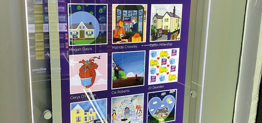 A commercial project brief was given to the Foundation Studies in Art and Design students to create a panel of illustrations for a Williams Estates' LED light-pocket window display in its Ruthin branch on the theme of 'Home Is Where the Heart Is', with a Covid-19 twist if possible.