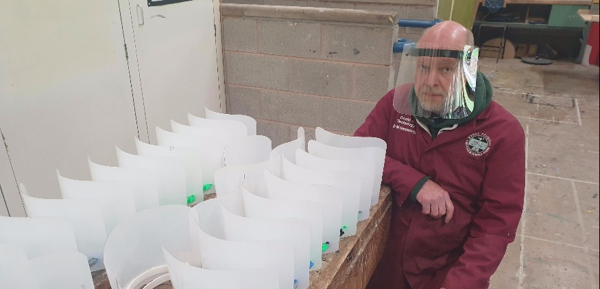 Design Technology teacher, technician James Bonser and Sixth Form pupil Jamie Lavery have been busy over the last six weeks, making protective masks that have been distributed across the community to assist in the fight against Covid-19.