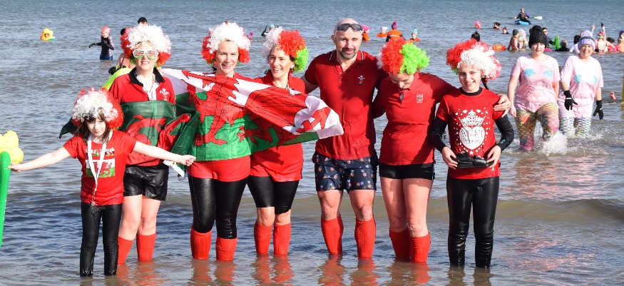Despite the cold waters, the sun shone down on the dippers as they ran towards the shoreline at Porth Eirias beach in Colwyn Bay after the countdown start.