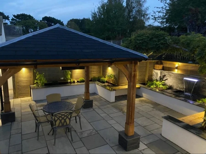 "The garden at Tŷ Gobaith has been completely renovated over the summer and now features a stunning water blade fountain, raised planters, an arch for climbing plants, plus a lit and heated wooden gazebo and furniture to allow year-round use."
