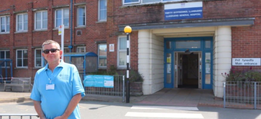 Adrian Lemberton, a retired Information Security Manager for Lancashire Police, is one of eight volunteers currently supporting staff at Llandudno Hospital.