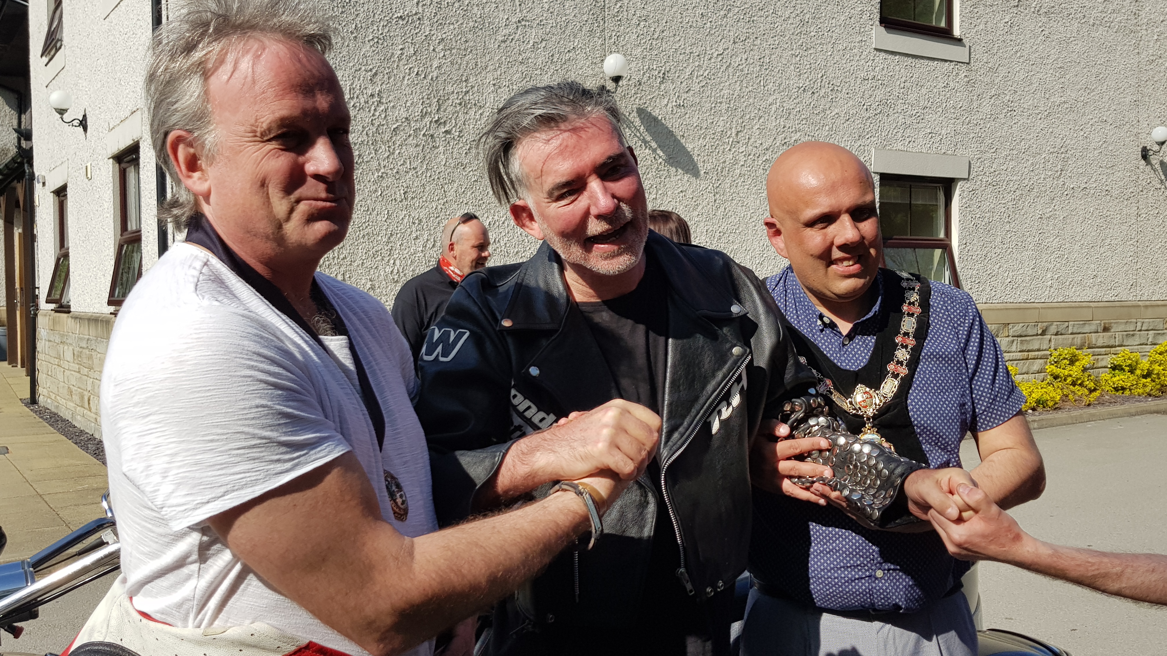 Former Mayor and Bayside Radio's Jeff Pearson was on hand to welcome Eddie along with Mayor Stephen Williams and Deputy Mayor Cllr Neil Bastow who is a keen motorcycle enthusiast and a big fan of Eddie.