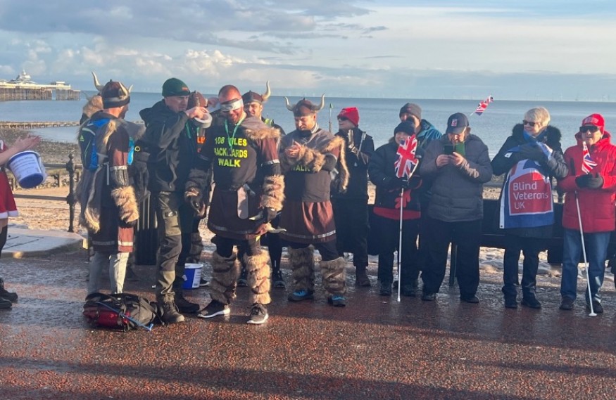Last week, Janet had the pleasure of seeing the Vikings, Nathan Midgley, Sam Midgley-Davies, Jamie Mills, Tom Jolley, Matt Harris & Phil Kendall, set off on a 108 mile backward blindfold walk without sleep from Llandudno Cenotaph to Chester Town Hall and then all the way back again.