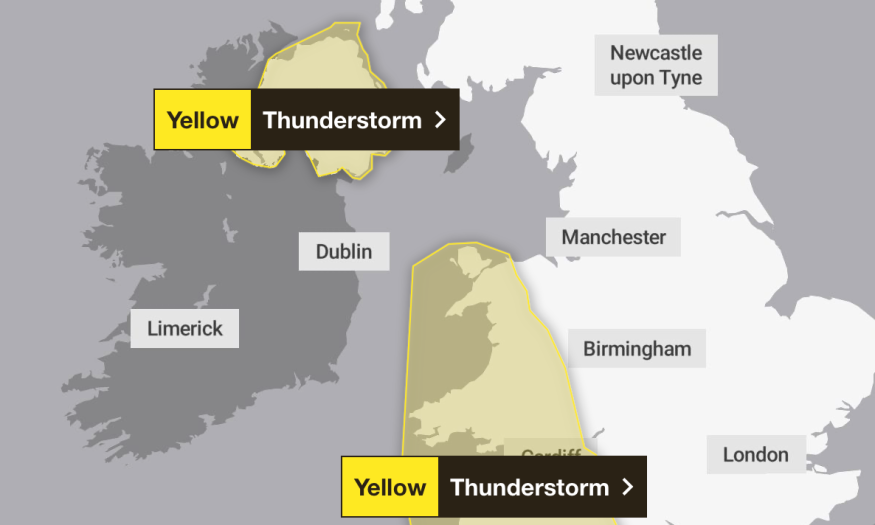 The yellow weather warning is in place from Thursday morning until 1pm and on Friday from 3pm until 6am Saturday.