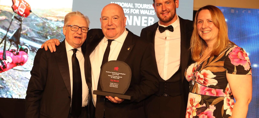 The team were delighted to collect their award for Best Attraction after many years of success in Snowdonia. The company is well known for their 'white knuckle' zip wire ride across a Bethesda quarry and their forest 'roller-coaster' in Betws-y-Coed.