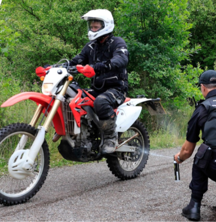 The spray helps officers mark offenders involved in illegal use of e-scooters and bikes for later identification.