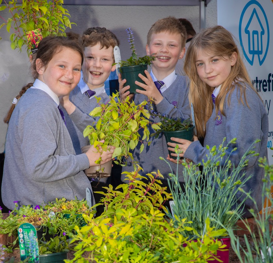 The children have played their part in the flagship redevelopment by Cartrefi Conwy, with their names on the artwork for a mural depicting the herbs, fruit and flowers planted in the gardens and chosen for their scent and textures.