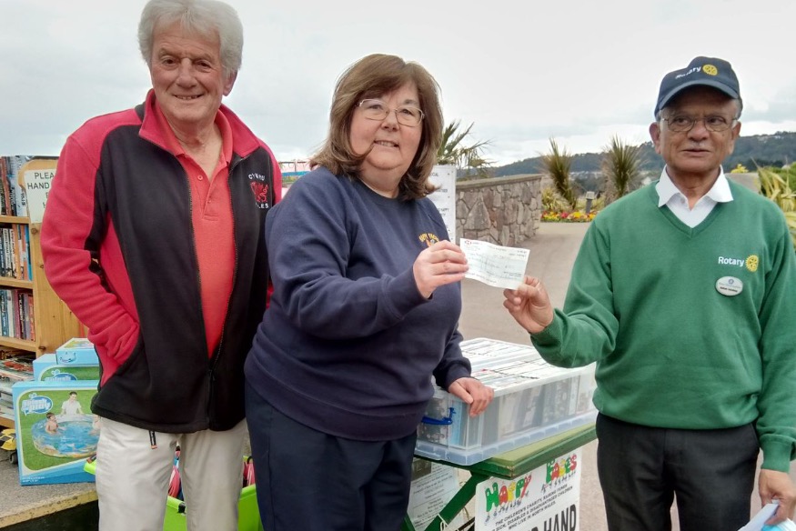Happy Faces in Rhos as Rotarian Ashok hands over cheque