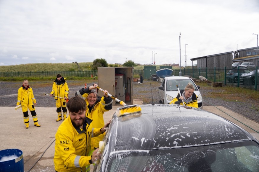In memory of a greatly missed crew member, Bob Baines, volunteers from Rhyl RNLI fundraised £1,570 for St Kentigern Hospice by holding a community car wash.