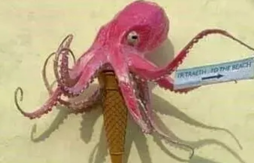 The octopus ice cream is called Lady Penelope, the result of a naming competition which was held by staff at the town’s Station View Café. Lady Penelope is a key component of the trail and now adorns a wall holding up a ‘to the beach sign’, pointing the way with one of her tentacled limbs!