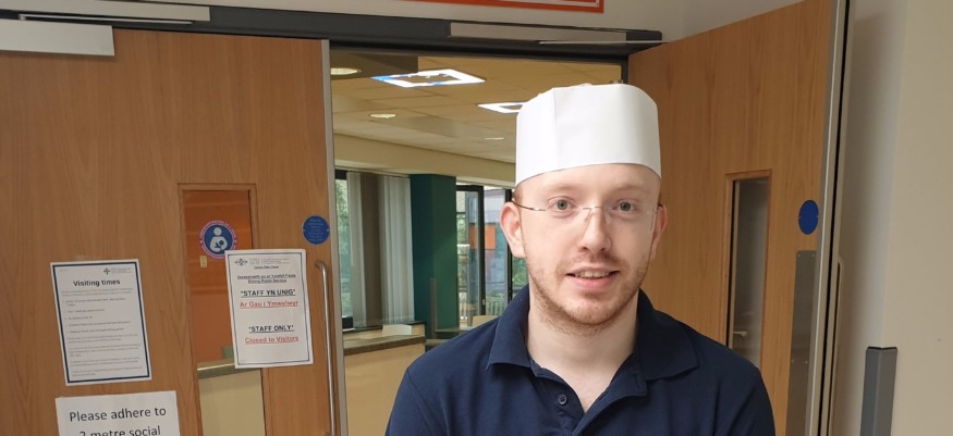 The 27 year old trained chef experienced anxiety and low mood after spending five months out of work, before the I CAN Work programme helped him find a job with the catering team at Glan Clwyd Hospital in March 2020.
