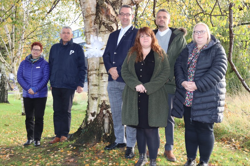 As a way of marking White Ribbon Day, the trees leading to North Wales Police HQ in Colwyn Bay have been hung with white ribbons. The PCC gathered together representatives from some of the services he helps fund to support victims of violence against women and girls in North Wales all of whom joined to show their support for the initiative and the campaign, along with a representative from the North Wales Police Federation.