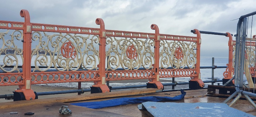 Of the 99 original decorative ironwork panels taken from the old pier, 74 were successfully refurbished and will be used on the new pier.