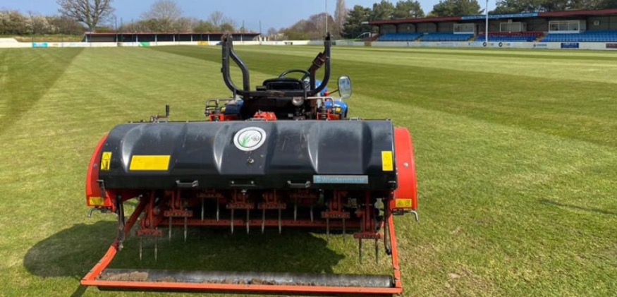 The turf is also getting plenty of attention and this week 360 Groundcare have been working on the Llanelian Road pitch including sanding and seeding.
