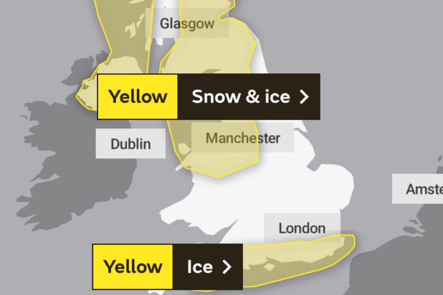 Yellow snow and ice warning extends to the North Wales coast