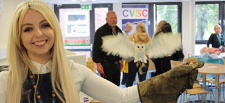 Local entrepreneur John Islwyn Jones, who was representing Big Ideas Wales as a role model, promoted business start-ups in partnership with Grŵp Llandrillo Menai's Enterprise department. He attended the event with his six-year-old owl Branwen, much to the delight of students and staff alike.
