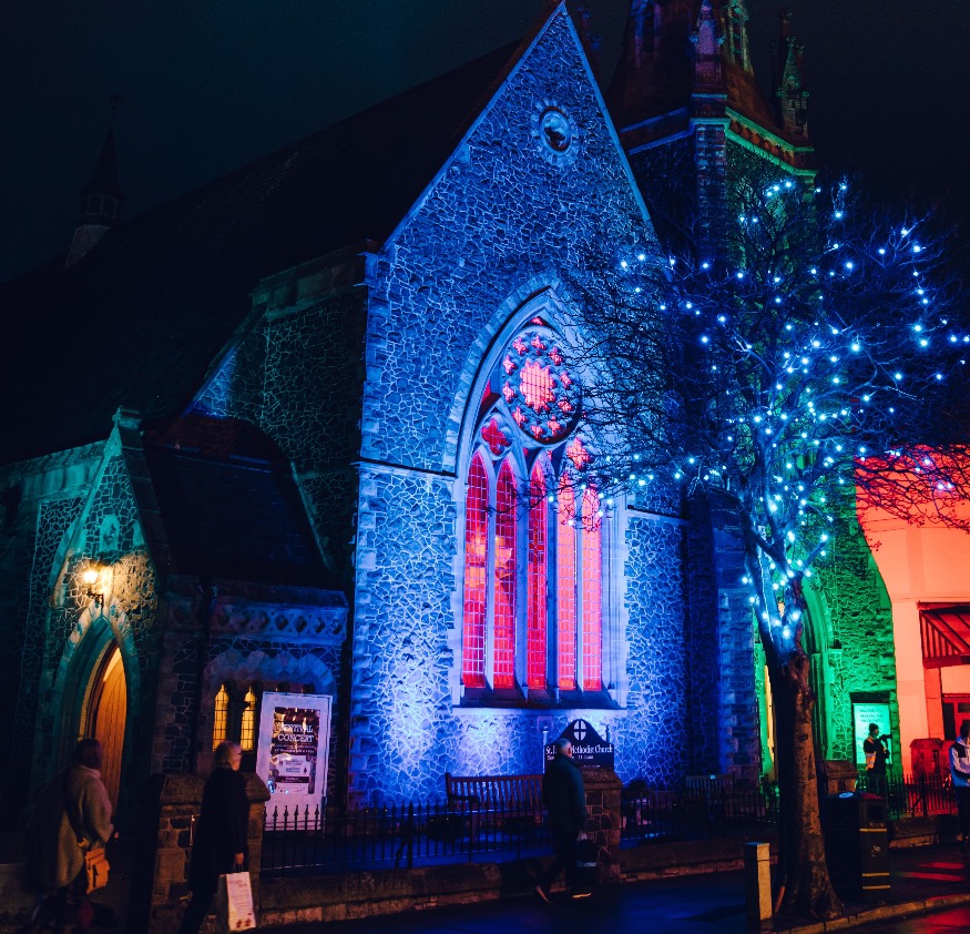 Chapter 2, on Saturday, is told through a series of stunning projections on to a series of buildings running from the King’s Arms to the edge of North Western Gardens.