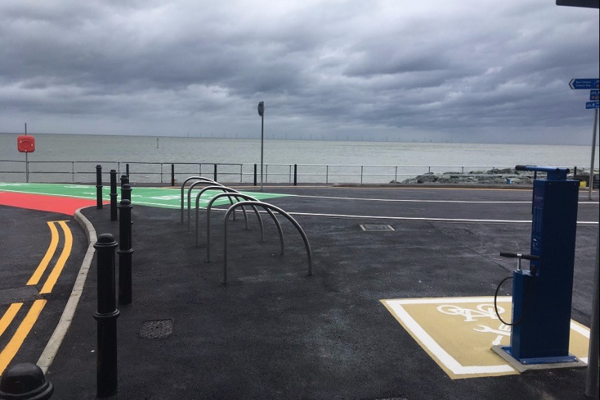 Cyclists and walkers celebrate the re-opening of Splash Point
