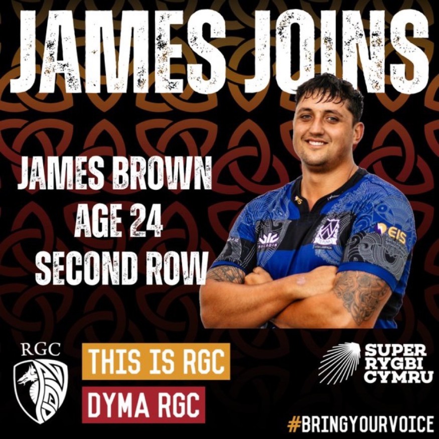 North Wales regional rugby club, RGC, has signed 24-year-old New Zealand lock/loose forward James Brown for the upcoming season.