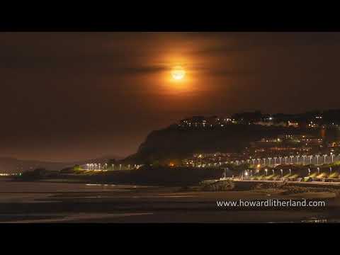 Time lapse of full moon rising over Colwyn Bay, North Wales
